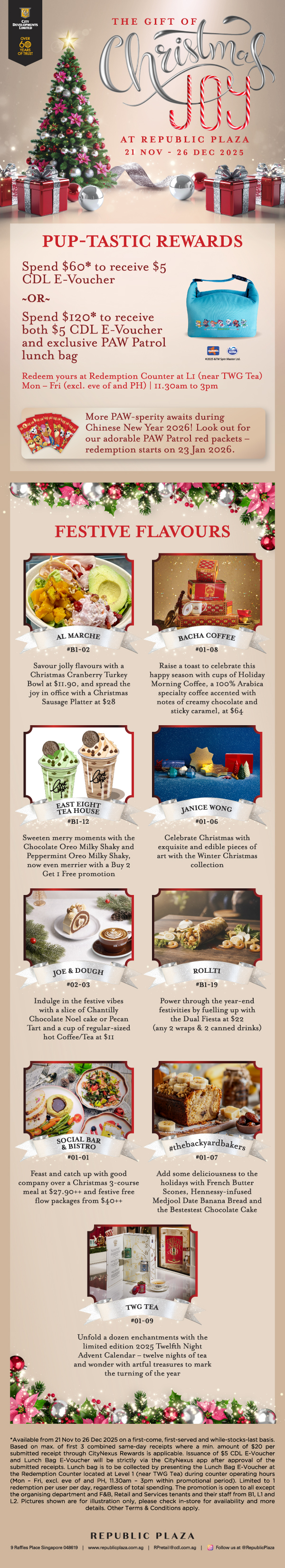 Calling all Republic Plaza office community, follow us on Facebook for the latest happenings, exclusive deals and exciting content curated just for you.